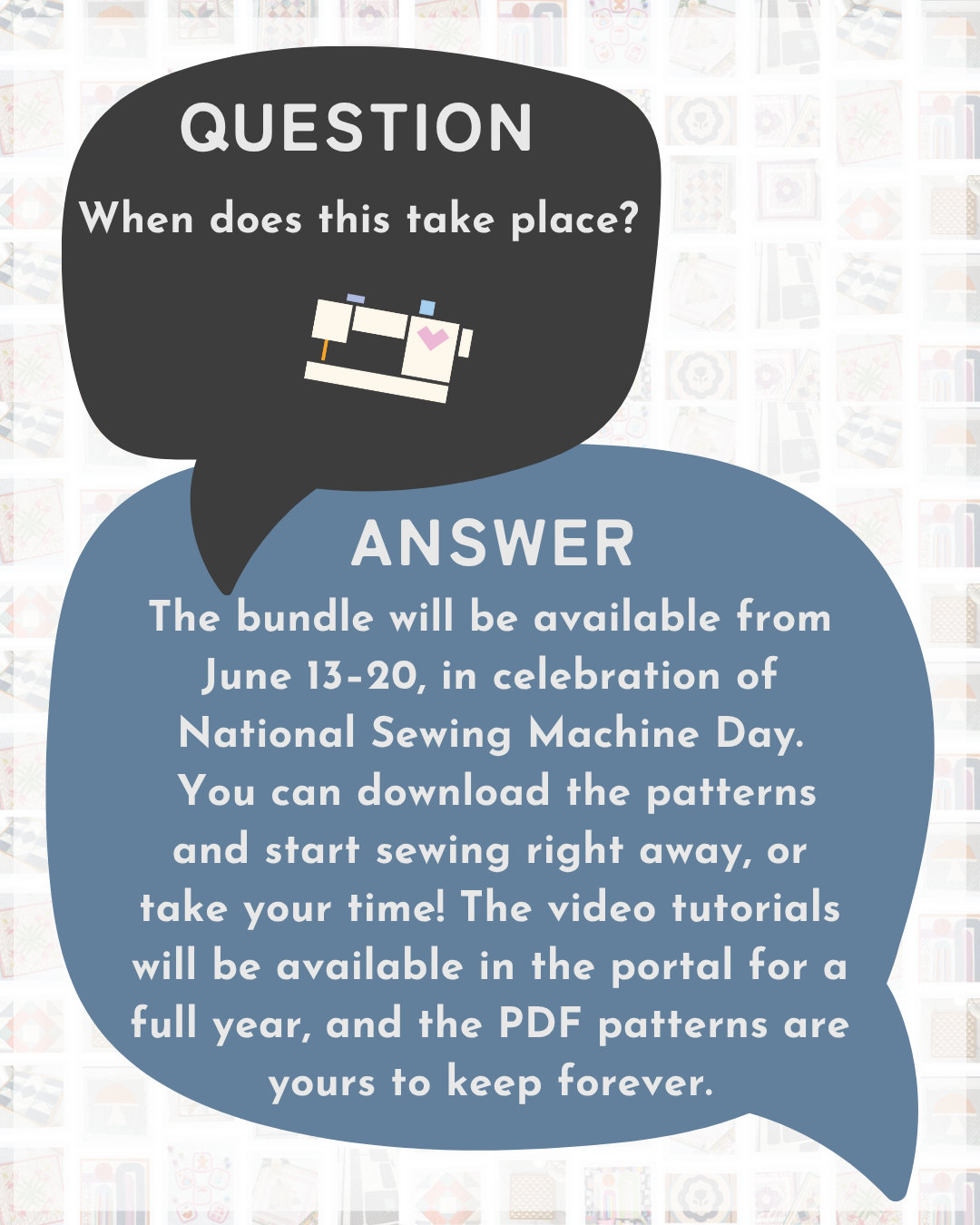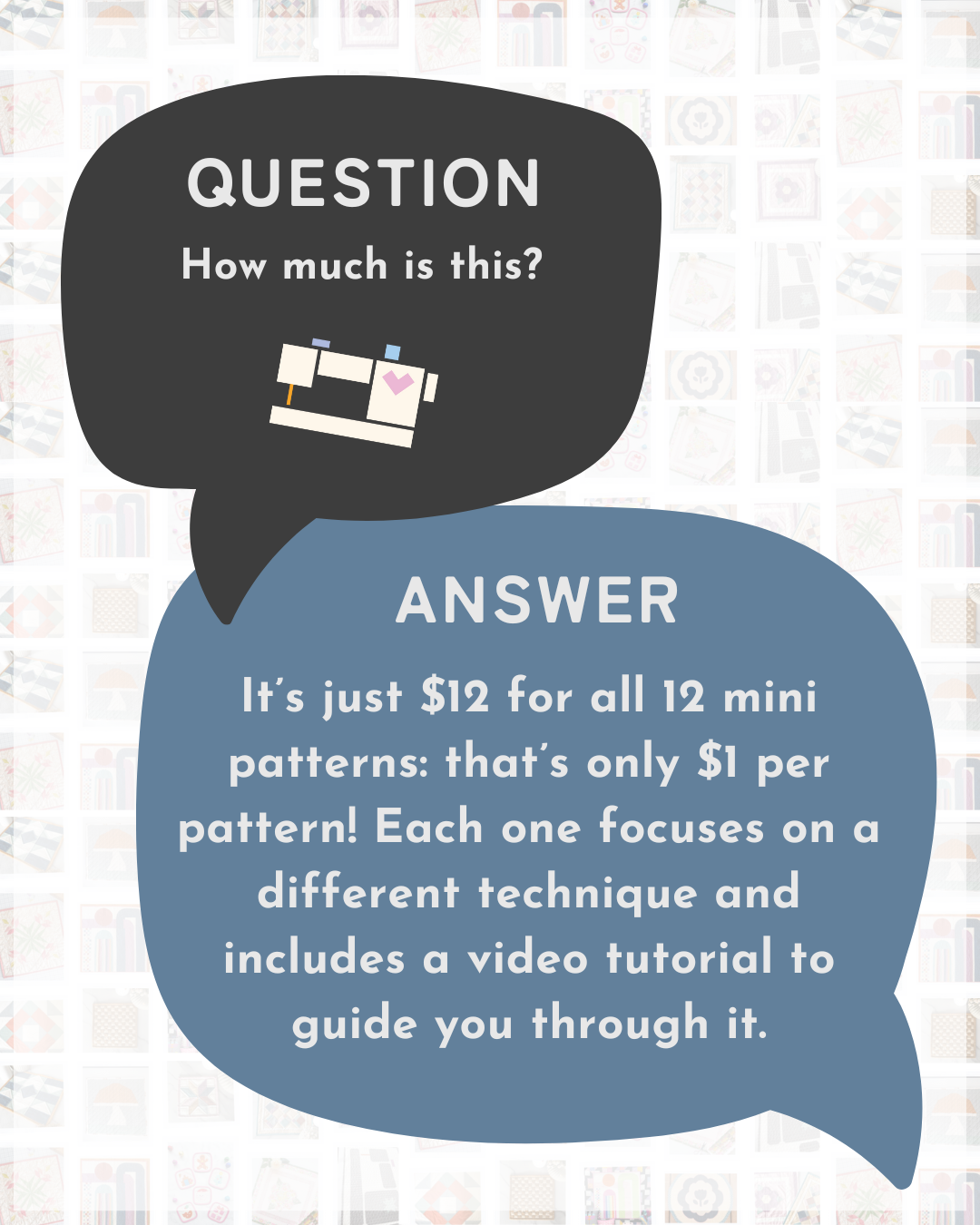 For 12 $ through this LINKĀ you can get access to all 12 patterns and a short video tutorial for each quilt made by each designer. But this offer only lasts for 1 week. After the 20th this pattern will be listed on my site for 12$.