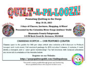 Hi Everyone! I just wanted to share that I will be at Quiltapalooza in Stevenson, WA. May-18-20th. It's open to everyone and they even offer a free beginner quilting class. If you know someone [...]