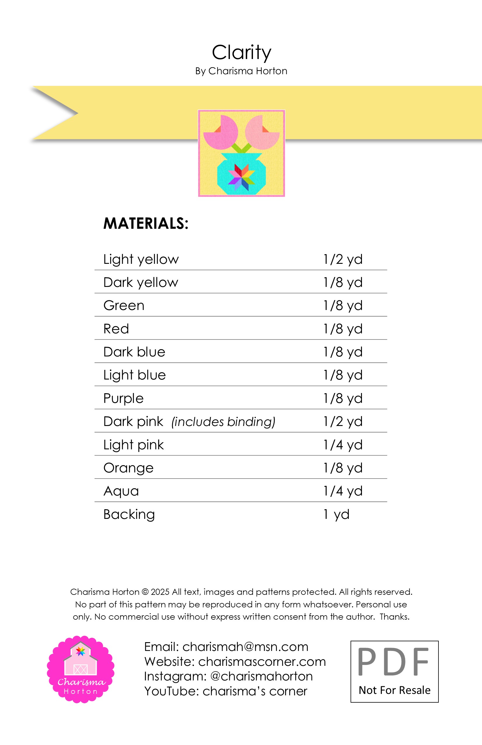 Clarity is one of the wallflowers made with my Dream weaver collection for Anodver Fabrics. You can buy this individually or buy the whole set of 13 for the price of 10.