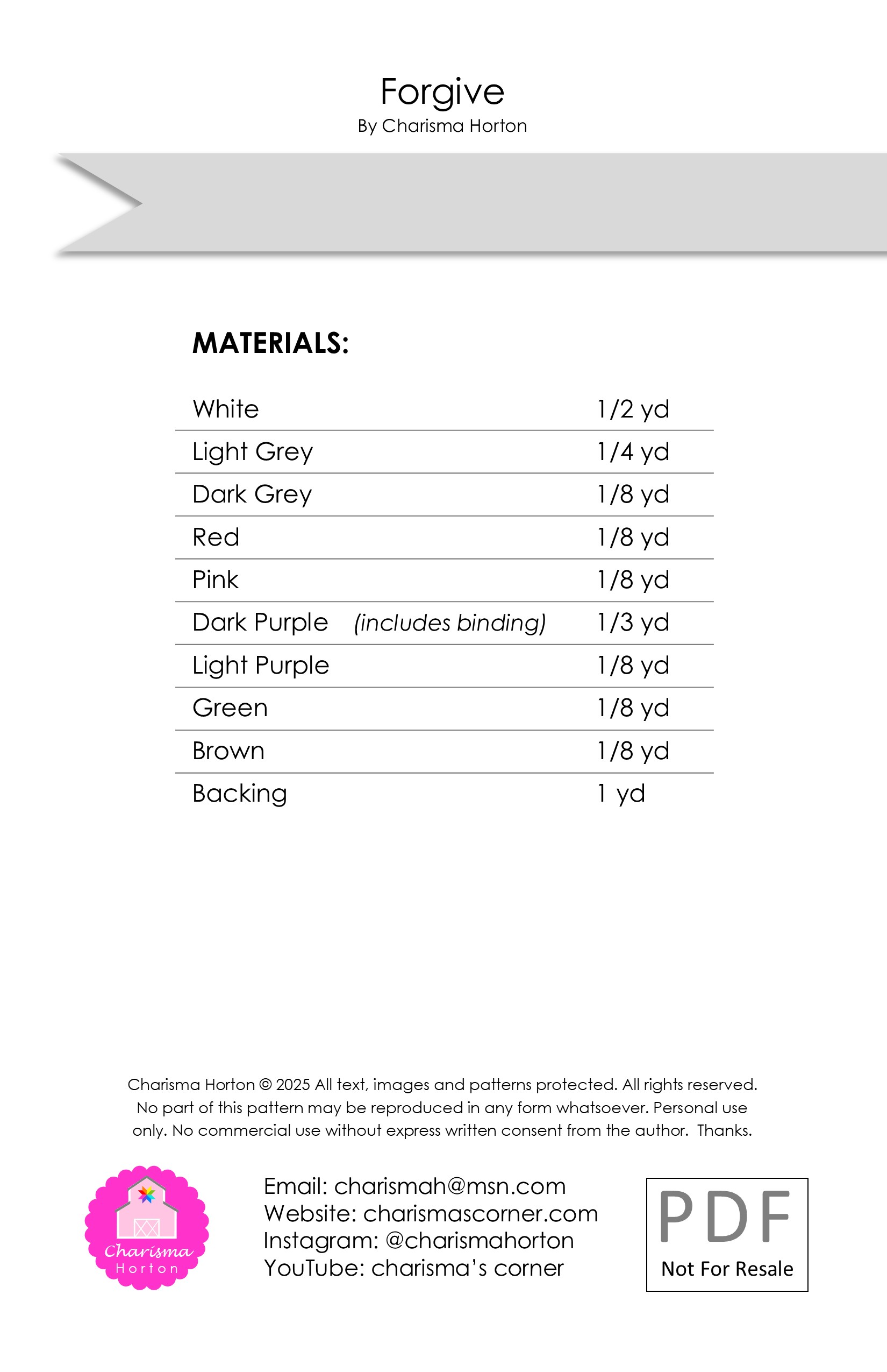 Forgive is one of the wallflowers made with my Dream weaver collection for Anodver Fabrics. You can buy this individually or buy the whole set of 13 for the price of 10.