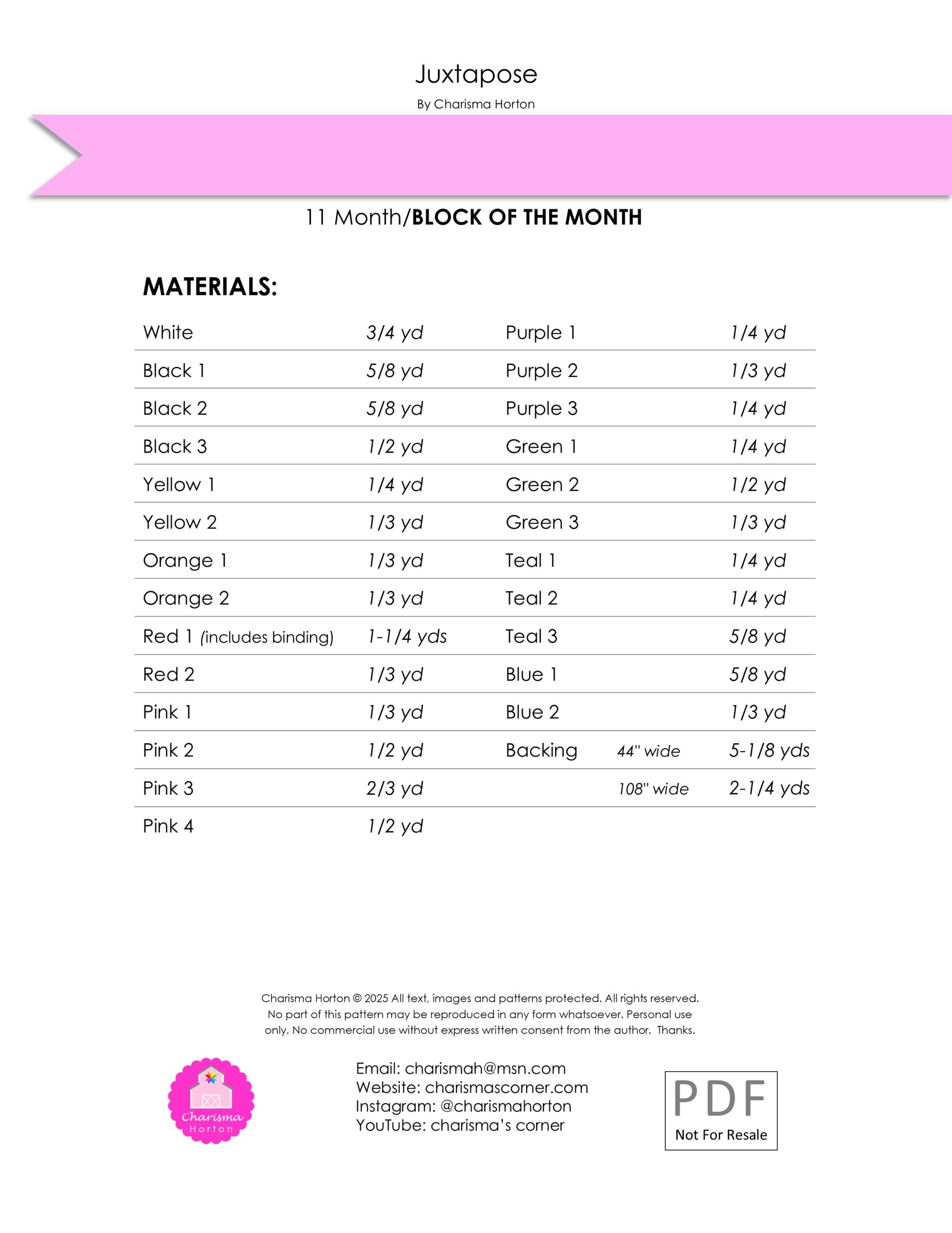 This pattern is written in a BOM style for ease. This is a great sampler with a variety of blocks and techniques.