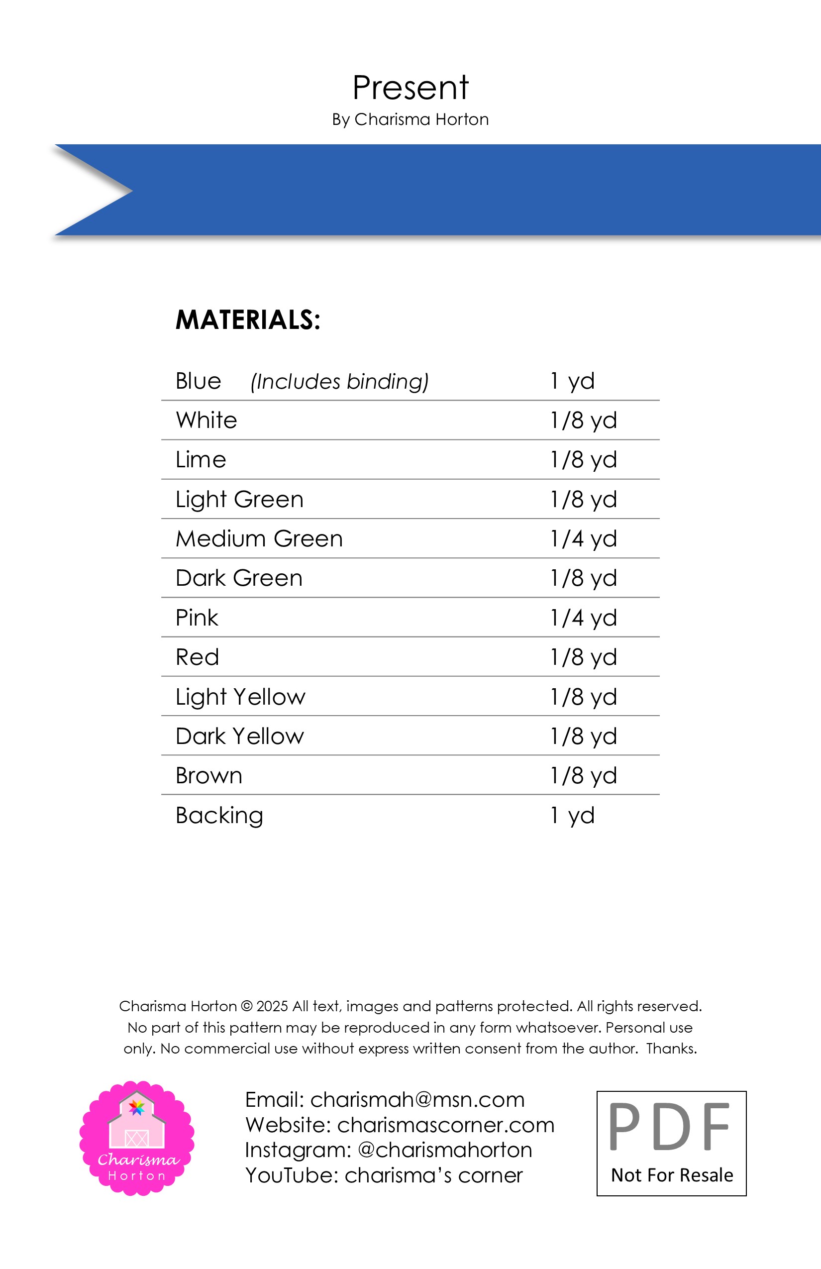 Present is one of the wallflowers made with my Dream weaver collection for Anodver Fabrics. You can buy this individually or buy the whole set of 13 for the price of 10.