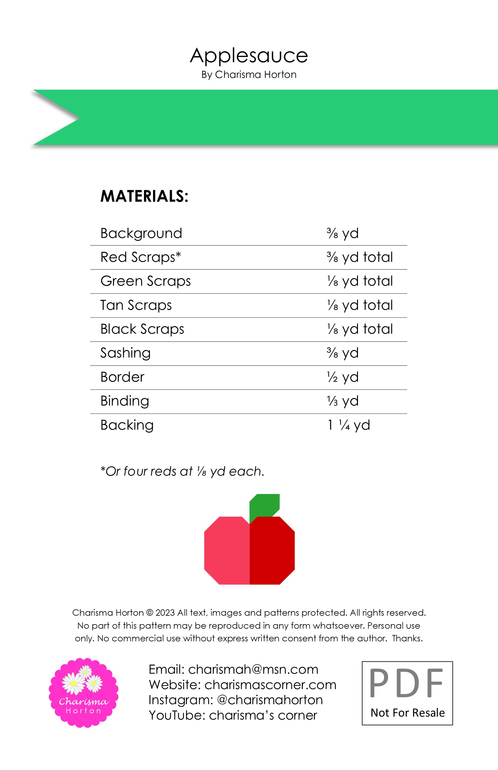 Digital Quilt Pattern ~ Applesauce quantity