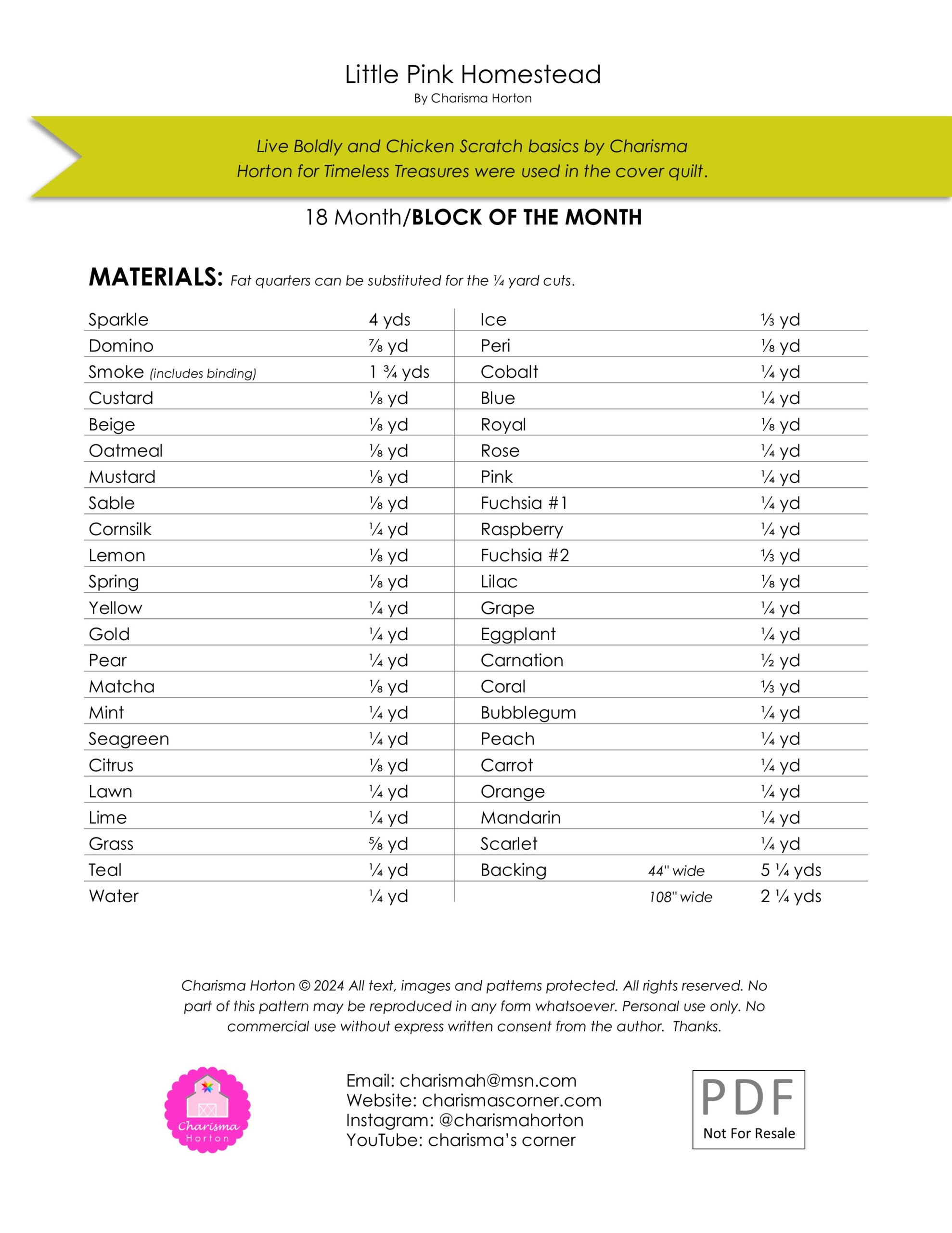 Digital Quilt Pattern ~ Complete Little Pink Homestead Pattern quantity