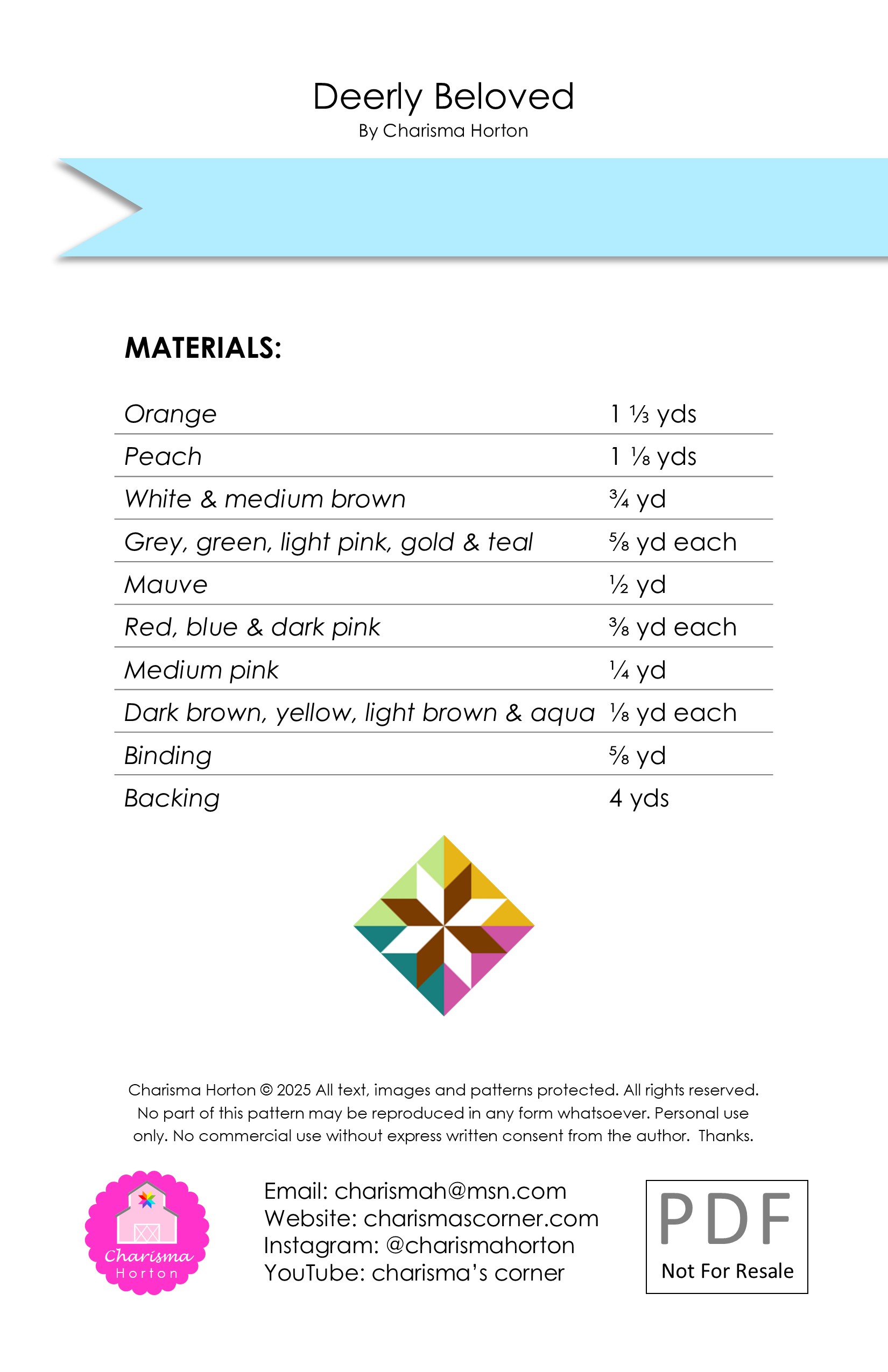Deerly beloved is an intermediate project that includes paper piecing, templates and applique.