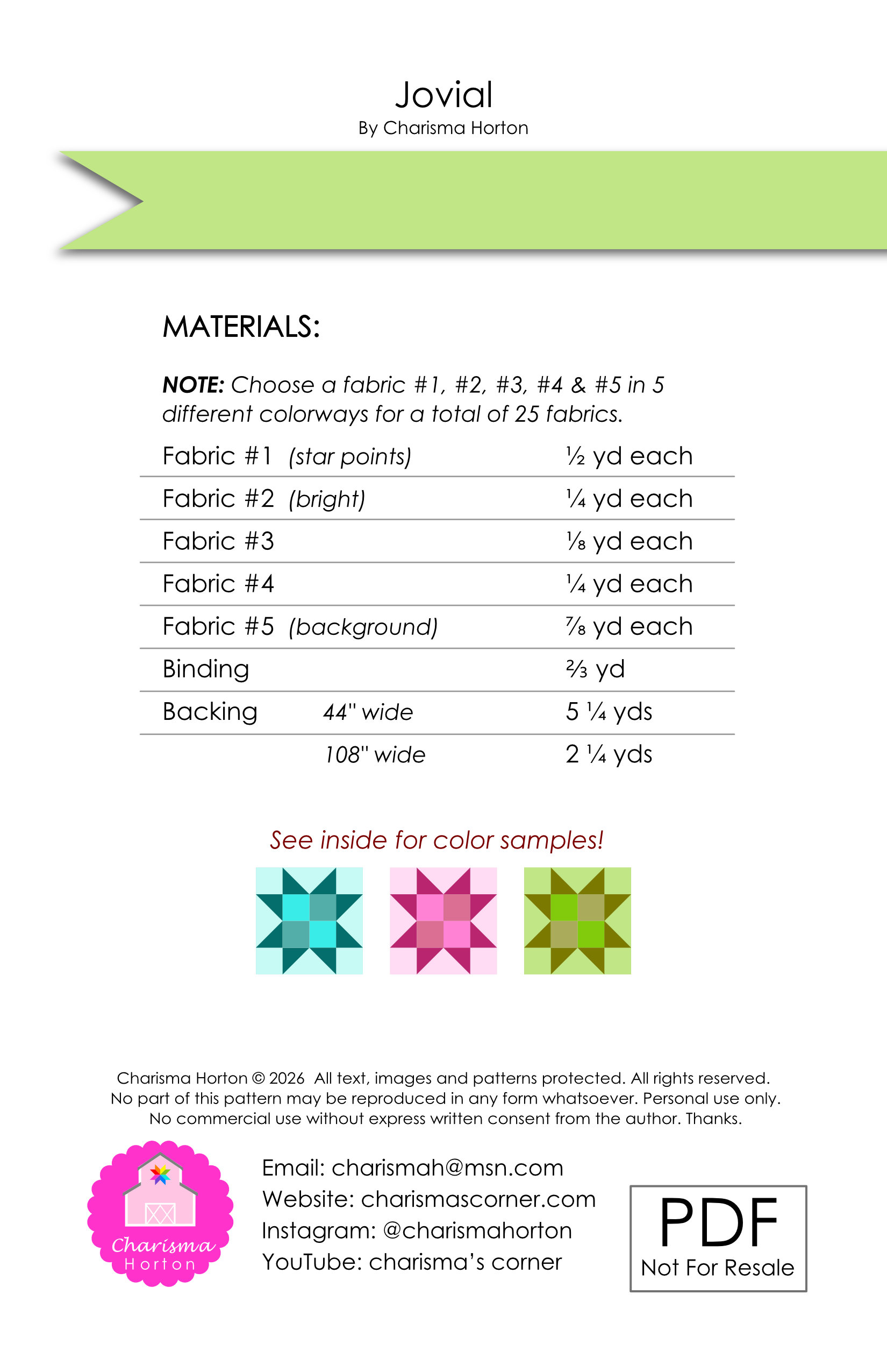 Quilt Pattern ~ Jovial quantity